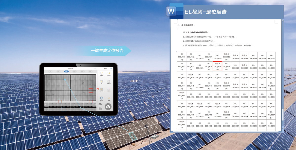 卓越的5G信號(hào)模式:150米范圍超強(qiáng)電磁干擾信號(hào)屏蔽,EL檢測(cè)更順暢,同時(shí)具備多種組件掃碼匹配模式,檢測(cè)圖像自動(dòng)匹配組件條碼,方便溯源查詢。